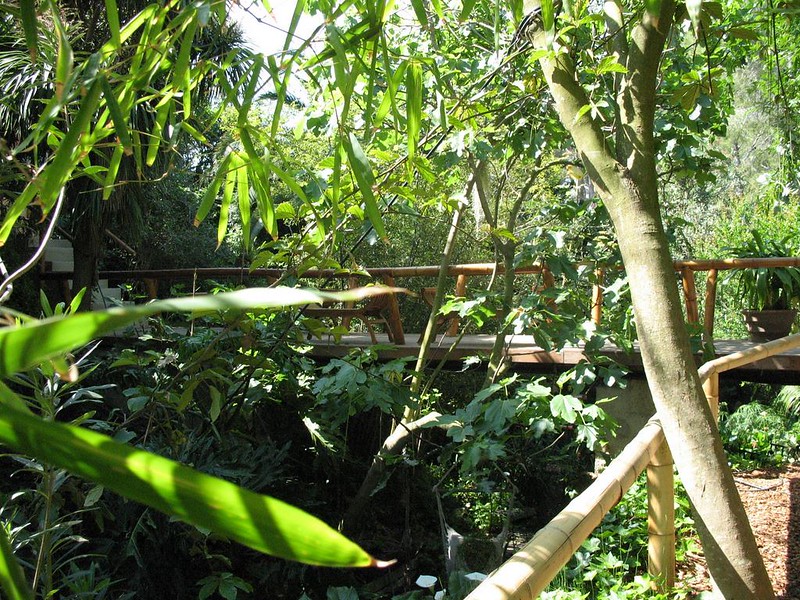Puentes de bambú, plantas tropicales, peces de colores, le hacen sentir a uno en un lugar singular. 3000 m2 de naturaleza y plantas de todo el mundo, desde Costa Rica hasta Malasia.